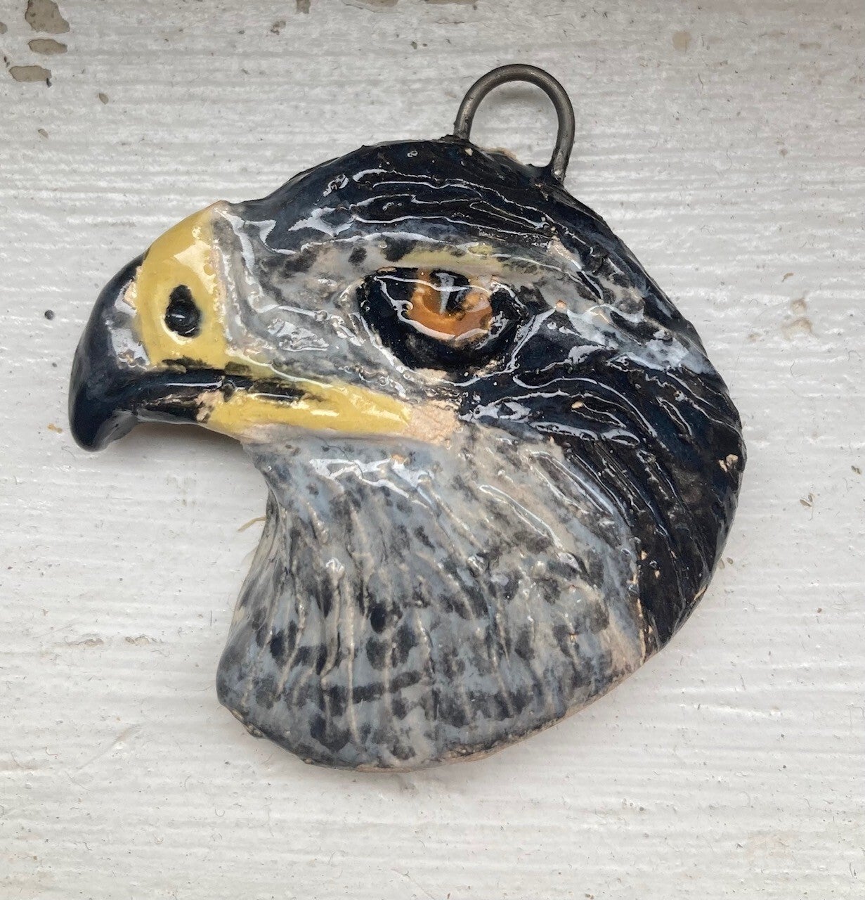 handgefertigte Keramik Anhänger in Greifvogeloptik